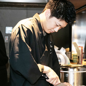 平成生まれながらも、昭和の職人気質をあわせ持つ一面も。見た目とは裏腹に人懐っこく、気さくな人柄で常連客からも親しまれている。ぜひカウンターで気軽に声をかけていただきたい。料理と人柄、どちらも楽しめる時間をお届けします。